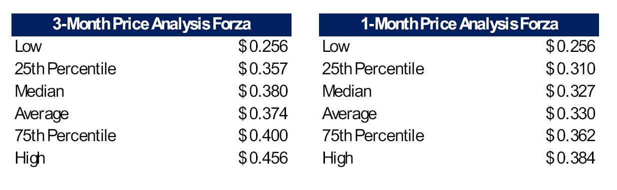 Based on our analysis of Forza’s financial performance and position, there is no basis to deviate from the fair value hierarchy when determining the fair value/fair market value of Forza’s common stock. As a result, a quoted price in an active market provides the most reliable evidence of fair value and should be used to measure fair value/fair market value, as evidenced below.